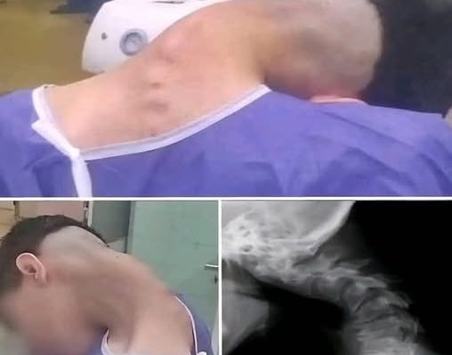 The pictures – published by doctors at the Al-Zahra University Hospital in Isfahan, Iran – show a 23-year-old man with an extreme bend in his neck, which developed after years of substance abuse.