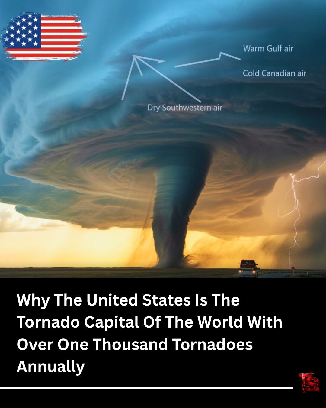 Why the Unitet States is the tornado capital of the world with over one thousand tornadoes annually